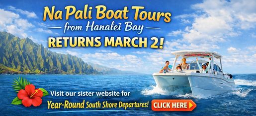 Hanalei Bay departures resume March 2. March and April tours are based on ocean conditions. We recommend booking a morning tour and scheduling early in your trip. If conditions require a cancellation, we can rebook you before you leave the island.